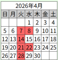 4月の営業日カレンダー