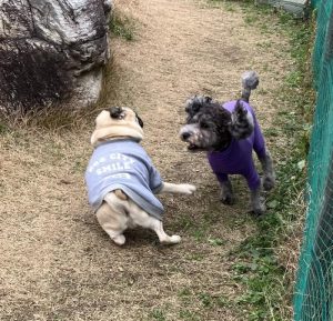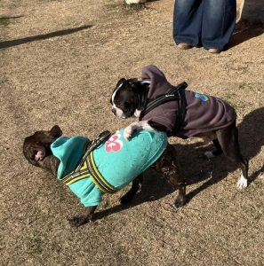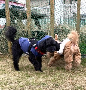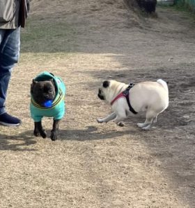 お昼過ぎには雪が舞い降りてきて、とても寒かったのですが、やっぱりわんちゃんはお友達と追いかけっこをして遊んでいました🐾
