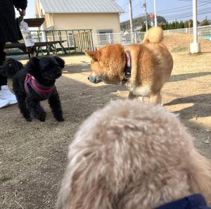 朝は風が無くて昼頃から風が強まる日が多い中 今日は一日穏やかだったのでわんちゃん達ものんびりの子が多かったです